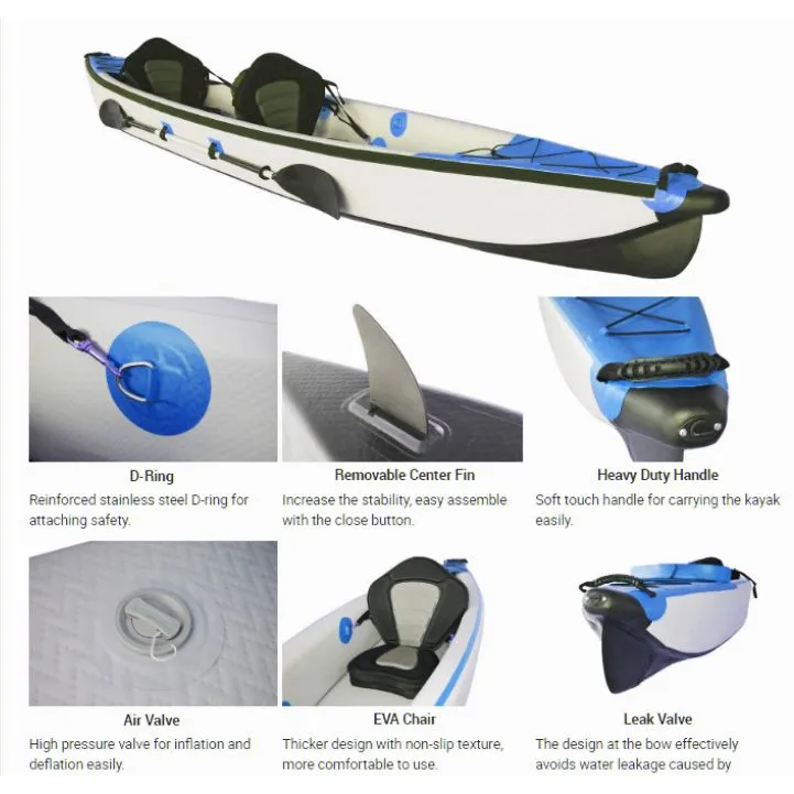 Είναι το πρώτο φουσκωτό καγιάκ που συνδυάζει φουσκωτό καγιάκ με dropstich πάτωμα και dropstitch μπαλόνια/τοιχώματα. Mε όμορφη σπορ γραμμή, ποιοτική κατασκευή, πολύ ανθεκτικό υλικό, Drop Stitch Πάτωμα και πλαινά, slide In Κεντρικό πτερύγιο αλλά και πλαστικό το μπρος και πίσω μέρος της καρίνας εντυπωσιάζει όχι μόνο με την πλευστότητα, ανθεκτικότητα, την ακαμψία αλλά και την ταχύτητά του. Επίσης το πλαστικό στο μπροστινό και το πίσω μέρος του σκάφους προστατευει από γδαρσίματα και γρατζουνιές κατά την επαφή με το έδαφος.