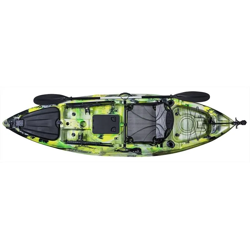 Οι δυο μεγάλες μεταλλικές ράγες στα πλαινά δίνουν την δυνατότητα τοποθέτησης διαφόρων αξεσουάρ χωρίς να τρυπήσετε το καγιάκ. Αναμονές για ηλεκτρική μηχανή όπως και τρείς αναμονές (2 στα πλαινά και 1 στην μέση του καγιάκ) σας επιτρέπουν επίσης να τοποθετήσετε αξεσουάρ όπως χωνευτές ή περιστρεφόμενες καλαμοθήκες. Ο χειρισμός του καγιάκ με το πηδάλιο σας ελευθερώνει τα χέρια σας για καλύτερο ”κουπί”.
