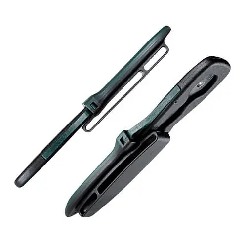 Στο πάνω μέρος της λεπίδας υπάρχει ειδική εγκοπή, που χρησιμοποιείται ως εξωλκέας βεργών.