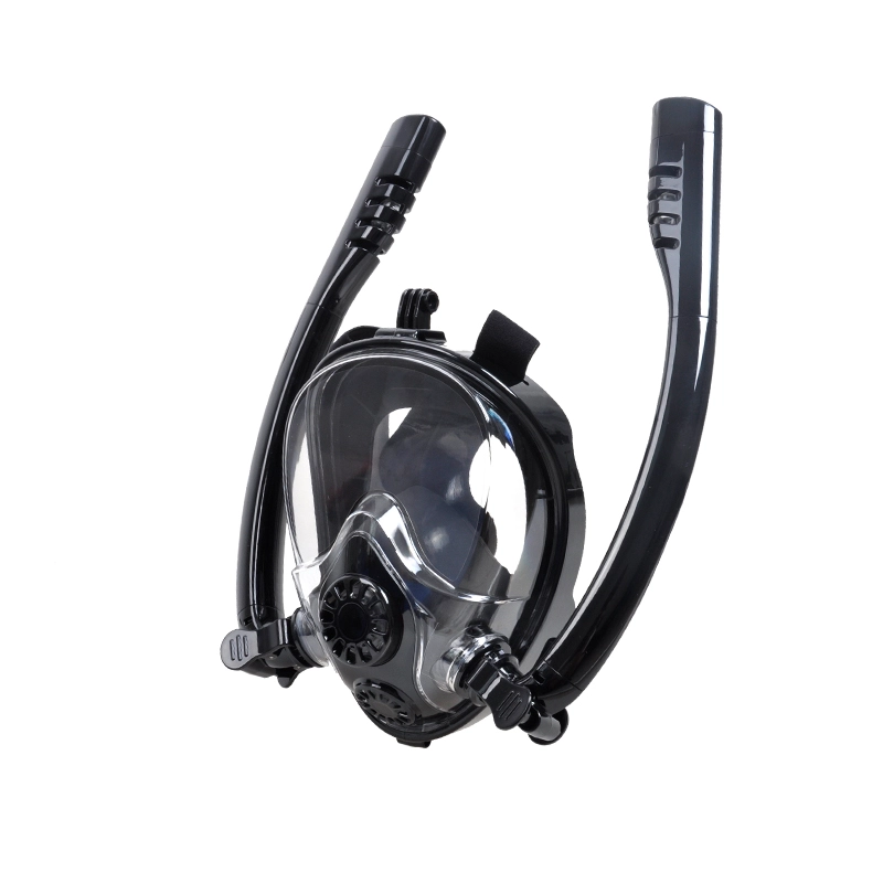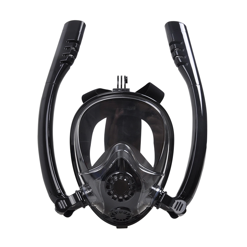 Full face μάσκα σιλικόνης, με οπτική γωνία 180 μοίρες και με διπλό αναπνευστήρα.