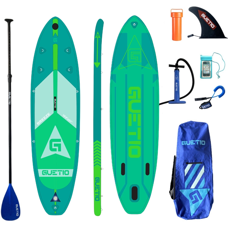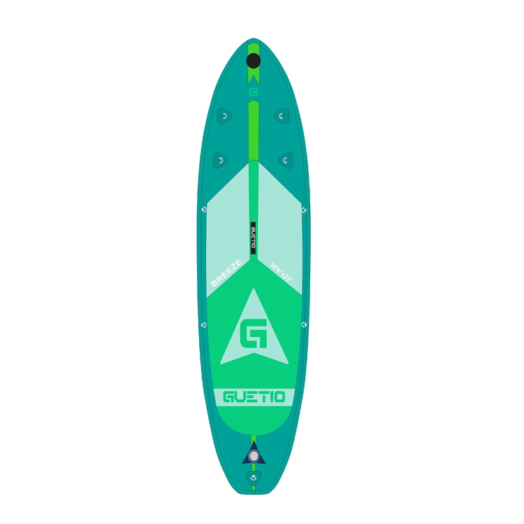 – Το SUP Φουσκωτό GUETIO Breeze 10.4 είναι μια εξαιρετική φουσκωτή σανίδα κατασκευασμένη για όλους τους κωπηλάτες. Συνδυάζει σχεδιαστικά στοιχεία τόσο της παραδοσιακής σανίδας all-around όσο και της Touring σανίδας, διατηρώντας τα καλύτερα χαρακτηριστικά της καθεμιάς, που την καθιστούν εξαιρετική στην σταθερότητα για μεγαλύτερες αποστάσεις. Αυτό το SUP είναι κατάλληλο για αρχάριους και μια διαφορετική εμπειρία για προχωρημένους κωπηλάτες.